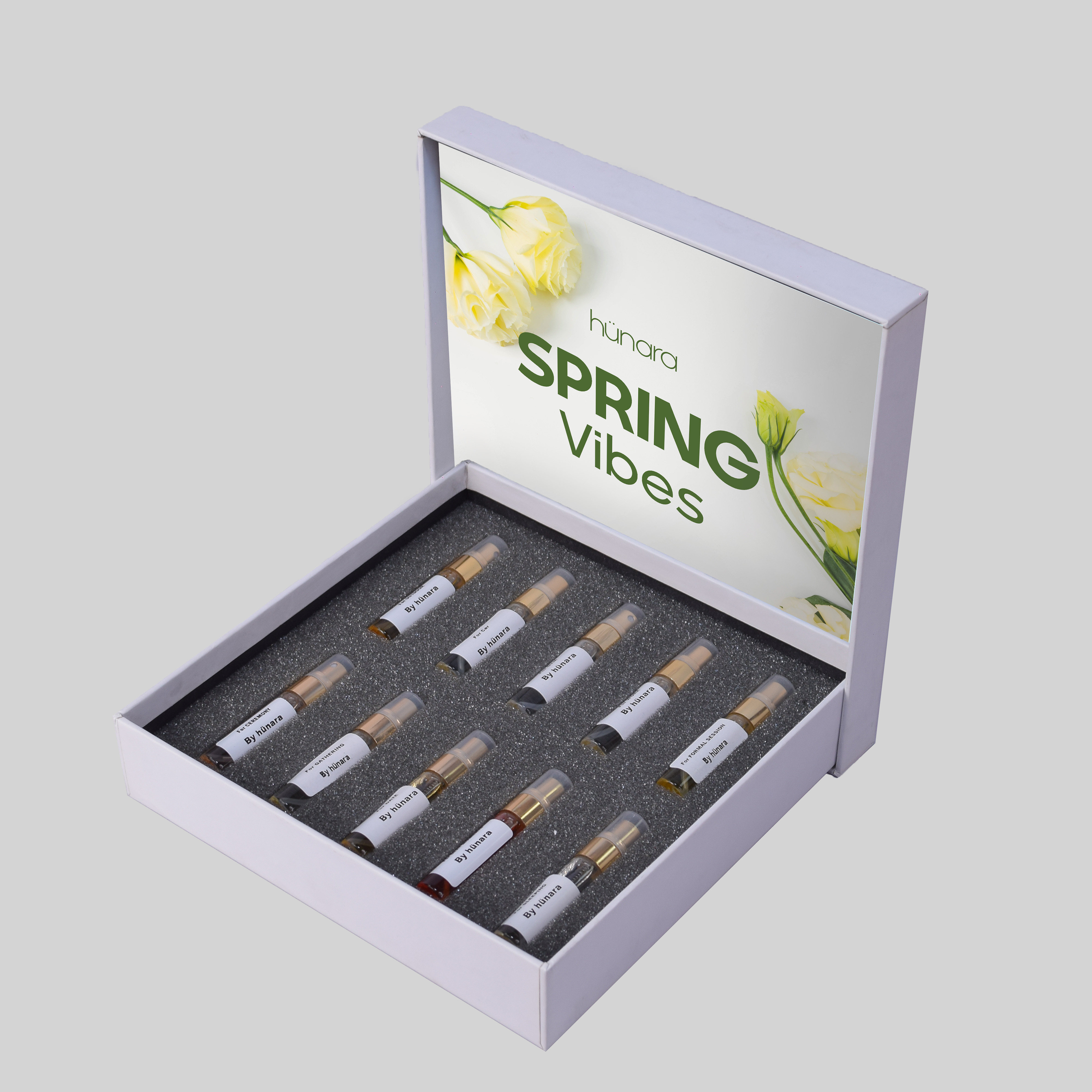 ۱۰ عطر داخل پک بهار، برای ۱۰ موقعیت مختلف طراحی شده است و عطر هر موقعیت بصورت دقیق مناسب همان موقعیت و مکان انتخاب شده است.